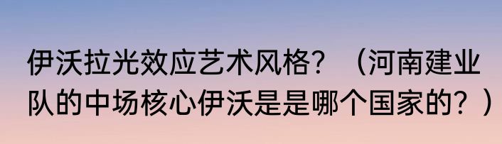提及伊沃拉光效应艺术风格?(河南建业队的中场核心伊沃是是哪个国家的?)的相关内容,许多人不太了解,来看看小嫦的介绍吧!