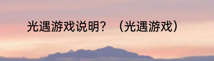 光遇游戏说明?(光遇游戏)