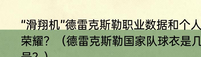 提及“滑翔机”德雷克斯勒职业数据和个人荣耀?(德雷克斯勒国家队球衣是几号?)的相关内容,许多人不太了解,来看看小勇的介绍吧!