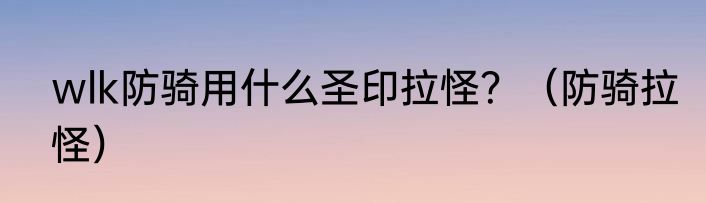 wlk防骑用什么圣印拉怪?(防骑拉怪)