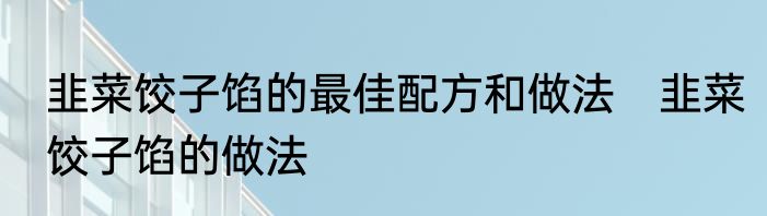 韭菜饺子馅的最佳配方和做法 韭菜饺子馅的做法