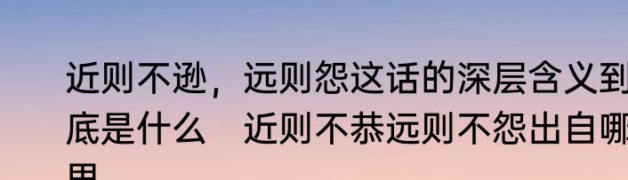 近则不逊,远则怨这话的深层含义到底是什么 近则不恭远则不怨出自哪里