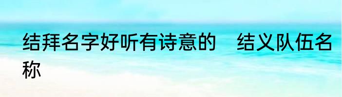 结拜名字好听有诗意的 结义队伍名称