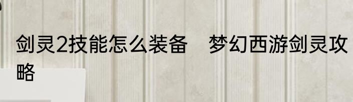 剑灵2技能怎么装备 梦幻西游剑灵攻略