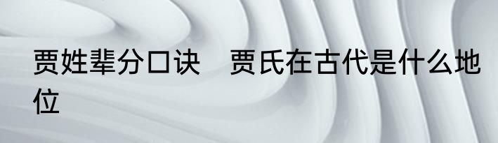 贾姓辈分口诀 贾氏在古代是什么地位