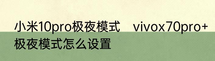 小米10pro极夜模式 vivox70pro+极夜模式怎么设置