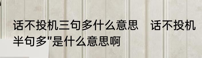 话不投机三句多什么意思 话不投机半句多”是什么意思啊