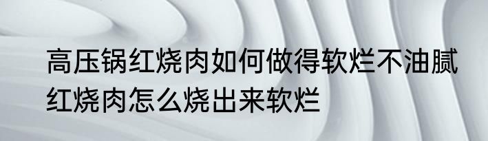 高压锅红烧肉如何做得软烂不油腻?