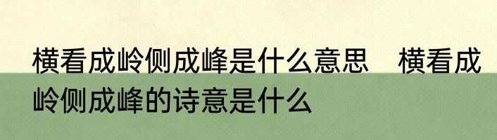 横看成岭侧成峰是什么意思 横看成岭侧成峰的诗意是什么
