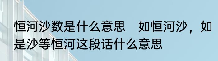 恒河沙数是什么意思 如恒河沙,如是沙等恒河这段话什么意思
