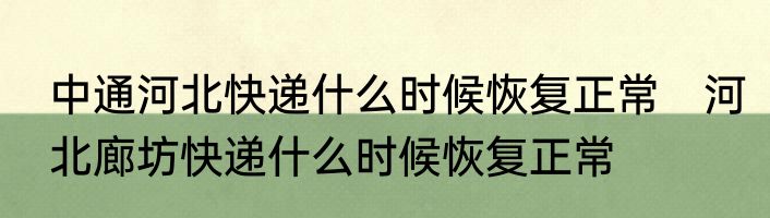 中通河北快递什么时候恢复正常 河北廊坊快递什么时候恢复正常