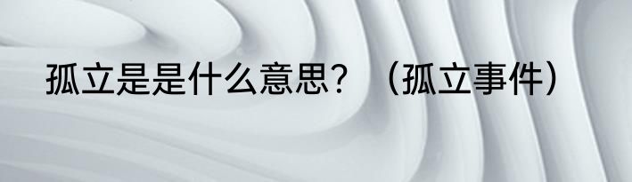 孤立,汉语词汇。拼音:gūlì释义:同其他事物不相联系。