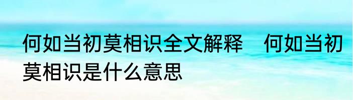 何如当初莫相识全文解释 何如当初莫相识是什么意思