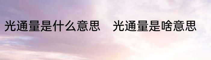 光通量是啥意思?