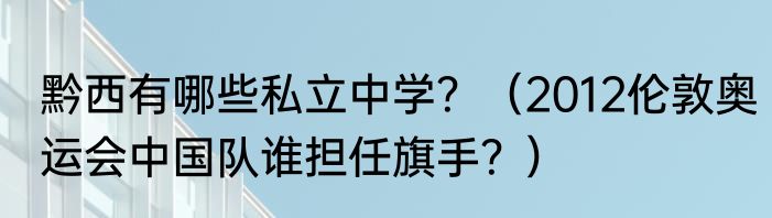黔西有哪些私立中学?(2012伦敦奥运会中国队谁担任旗手?)