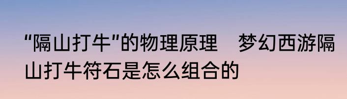 “隔山打牛”的物理原理 梦幻西游隔山打牛符石是怎么组合的