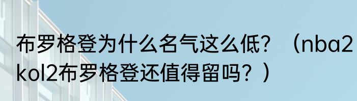 提及布罗格登为什么名气这么低?(nba2kol2布罗格登还值得留吗?)的相关内容,许多人不太了解,来看看小龙的介绍吧!