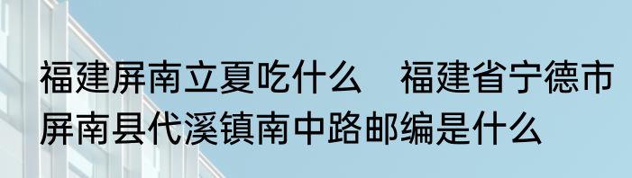 福建屏南立夏吃什么 福建省宁德市屏南县代溪镇南中路邮编是什么