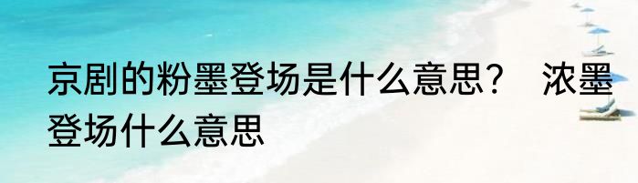 京剧的粉墨登场是什么意思? 浓墨登场什么意思
