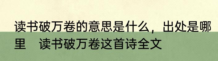 读书破万卷的意思是什么,出处是哪里 读书破万卷这首诗全文