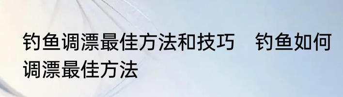 钓鱼调漂最佳方法和技巧 钓鱼如何调漂最佳方法