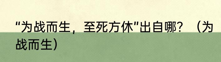 为己而战指的是为了自己而战斗。在生活之中只有自己靠自己才是真的靠得住的。所以有的时候就应该为了自己而战斗,如果自己不去战斗,那些战斗的人就会夺取属于自我的机会。