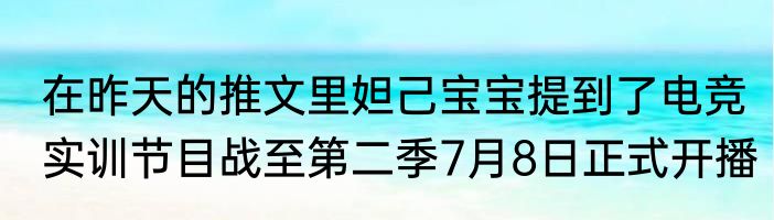 在昨天的推文里妲己宝宝提到了电竞实训节目战至第二季7月8日正式开播