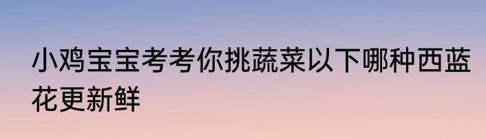 说起小鸡宝宝考考你挑蔬菜以下哪种西蓝花更新鲜,会有不少人想要了解,那么下面来看看小鸡宝宝考考你挑蔬菜以下哪种西蓝花更新鲜的有关内容。