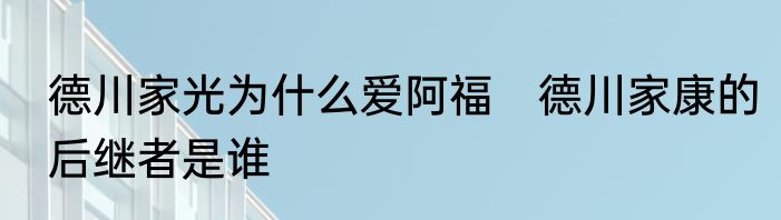 德川家光为什么爱阿福 德川家康的后继者是谁