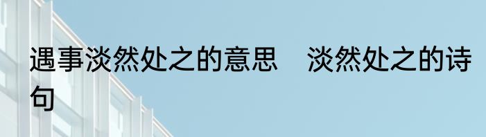 淡然处之,以漫不经心的态度对待事物,不以为意,泰然自若,神情如常,形容在紧急情况下沉着镇定,不慌不乱,形容处理事情沉着镇定,也指对待问题毫不在意,形容遇事镇静自如,毫不慌乱,例句: