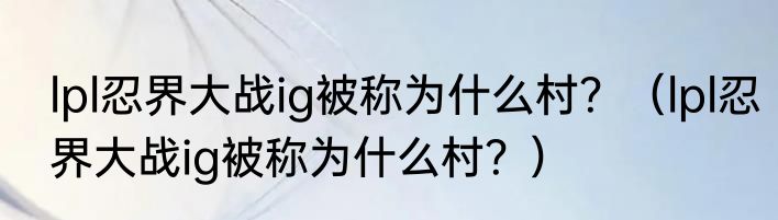 提及lpl忍界大战ig被称为什么村?(lpl忍界大战ig被称为什么村?)的相关内容,许多人不太了解,来看看小兰的介绍吧!