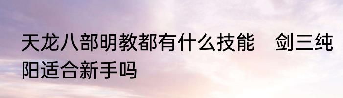 天龙八部明教都有什么技能 剑三纯阳适合新手吗
