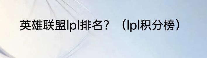关于lpl积分榜,来看看小章的介绍。