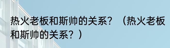 提及热火老板和斯帅的关系?(热火老板和斯帅的关系?)的相关内容,许多人不太了解,来看看小婵的介绍吧!