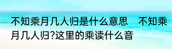 不知乘月几人归是什么意思 不知乘月几人归?这里的乘读什么音
