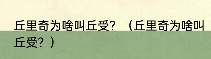 丘里奇为啥叫丘受?(丘里奇为啥叫丘受?)