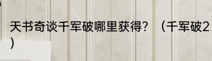 去西川沼泽的古墓森林里刷徽章,之后在副本入口处,可以用徽章买到千军破,不过前提是天资要到20级,不然有书也学不了的,每种不同的书要学习都要天资等级还有需要元神的努力赚取元神吧。