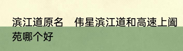 滨江道原名 伟星滨江道和高速上阖苑哪个好