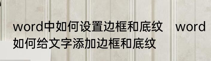word中如何设置边框和底纹 word如何给文字添加边框和底纹