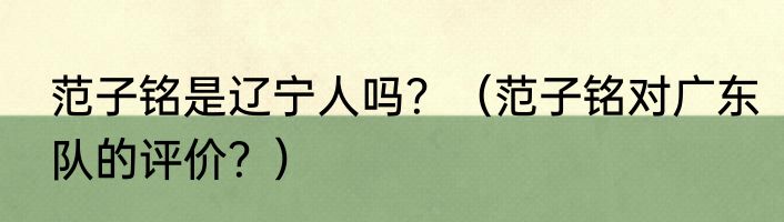 范子铭是辽宁人吗?(范子铭对广东队的评价?)