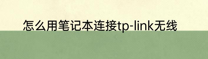 怎么用笔记本连接tp-link无线