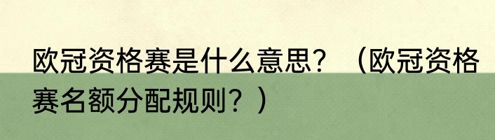 提及欧冠资格赛是什么意思?(欧冠资格赛名额分配规则?)的相关内容,许多人不太了解,来看看小绵的介绍吧!