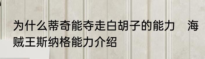 为什么蒂奇能夺走白胡子的能力 海贼王斯纳格能力介绍