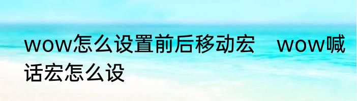 wow怎么设置前后移动宏 wow喊话宏怎么设