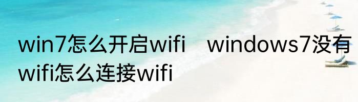 win7怎么开启wifi windows7没有wifi怎么连接wifi