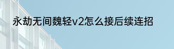 永劫无间魏轻v2的后续连招可以通过巧妙地利用技能的连贯性来实现。