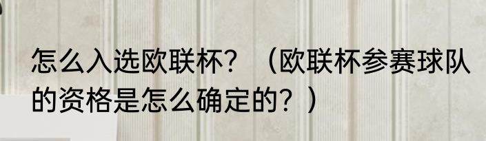 提及怎么入选欧联杯?(欧联杯参赛球队的资格是怎么确定的?)的相关内容,许多人不太了解,来看看小祖的介绍吧!