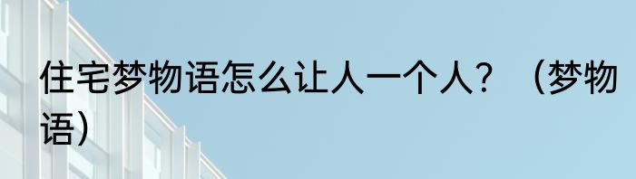 是一个人对住宅的梦想,可以对着全家人窃窃私语