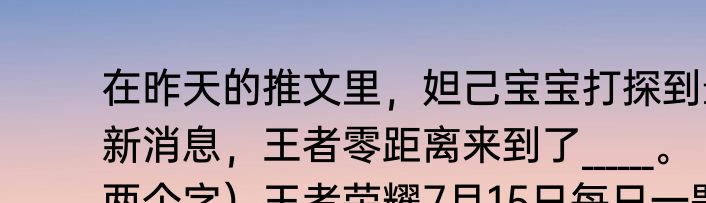 在昨天的推文里,妲己宝宝打探到最新消息,王者零距离来到了______。(两个字)王者荣耀7月15日每日一题答案