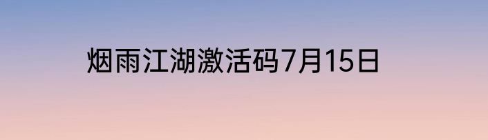 烟雨江湖激活码7月15日